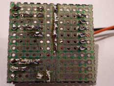 Here's a closeup of the board for a Pawn, with 6 resistors for the LED's around the helmet. Still to be added is the zener diode, as well as the resistor for the super-bright LED in the pawn's body.