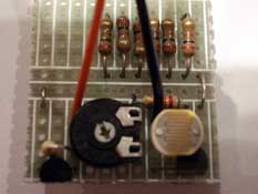 Stephen should write some more descriptive text here, but basically the board consists of a sensitivity-tunable photdiode (to turn the lights on and off at night), a transistor to convert the battery voltage to the right level for the LEDs, a zener diode so that the lights stay at a fairly constant brightness as the battery runs down, and finally a bank of resistors for the LEDs attached to that particular piece.