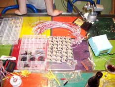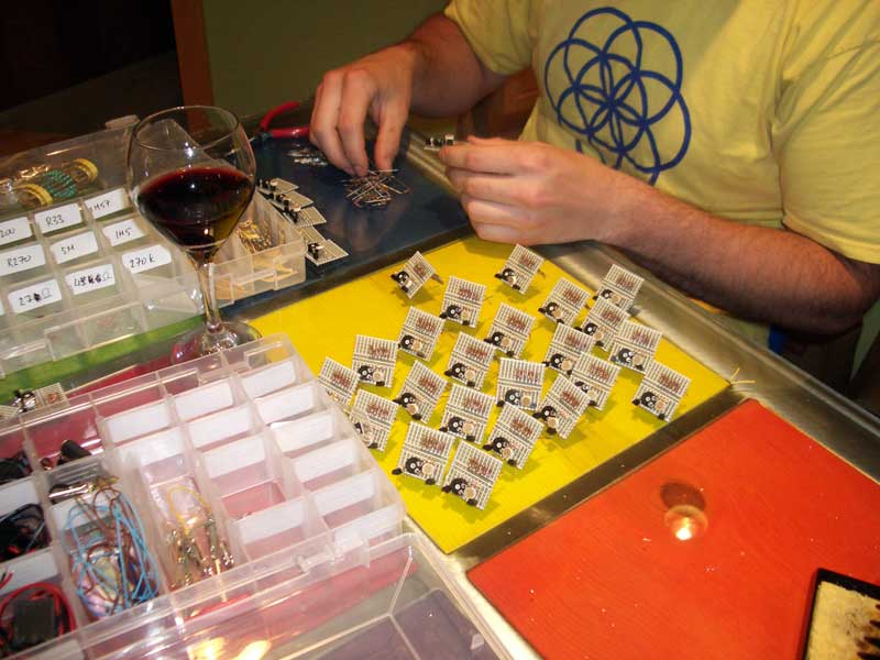 Building all 32 (+ spares) electronics kits took quite a bit of time. This work is usually done by robot nowadays: and after a full weekend of soldering, we all knew why!