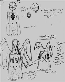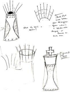 Here are some early sketches that Marianna did. These really help give an idea of what we're trying to accomplish with the set. We originally had hoped to use fire in the pieces, but time and safety constraints (can you imagine picking up a flaming steel chess piece?) have forced us to use electronic lighting instead. The "bodies" of the pieces are all conical -- sheet metal wrapped around steel tubing bent into rings. This shape allows the pieces to stack for transport and also minimizes the amount fabrication work.